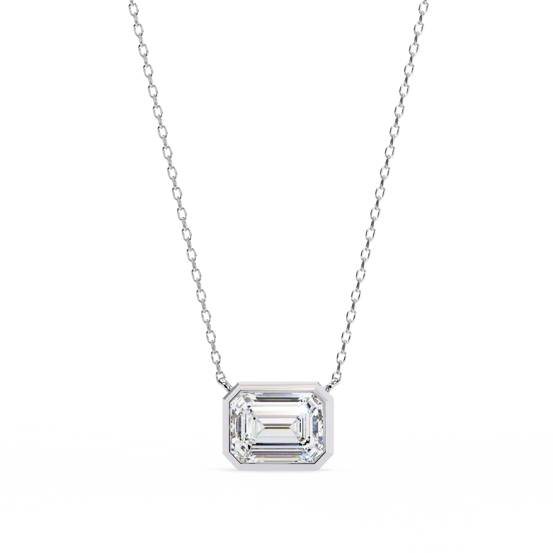 Elegant Emerald-Cut Diamond Pendant with Sleek Bezel Setting, Radiating Timeless Brilliance in 925 Silver | Minimalist Fine Jewelry Necklace (0.70 CT)