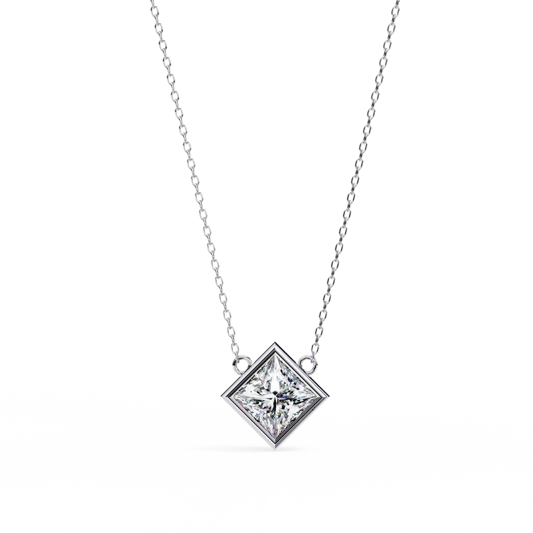 Princess Cut Diamond Bezel Pendant Necklace – Modern Geometric Solitaire in 925 Silver | Elegant Minimal Jewelry (0.70 CT)