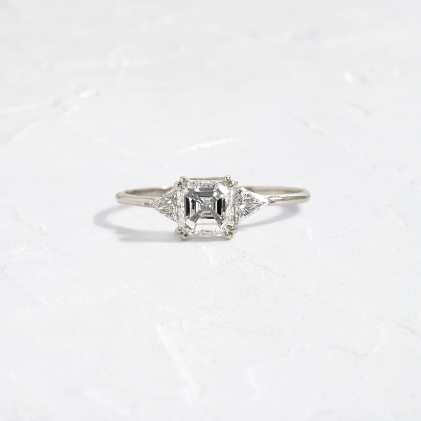 Sterling Silver Ring Three Stone 1.01 CT Asscher Cut Arrow Design | 925 Sterling Silver Ring for Women | Elegant Silver Engagement Ring